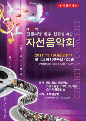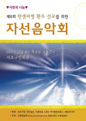 한센 환우들을 위한 자선음악회에 여러분을 초대합니다.