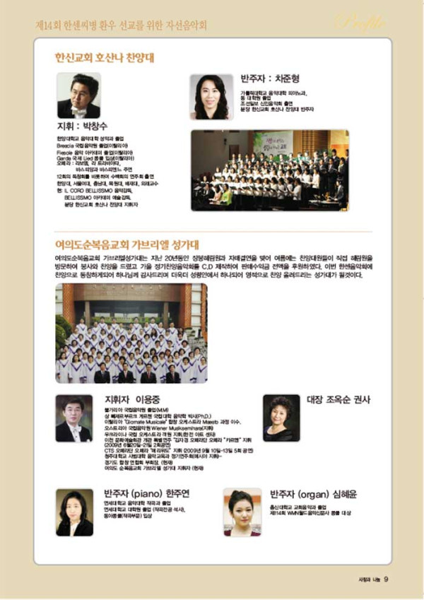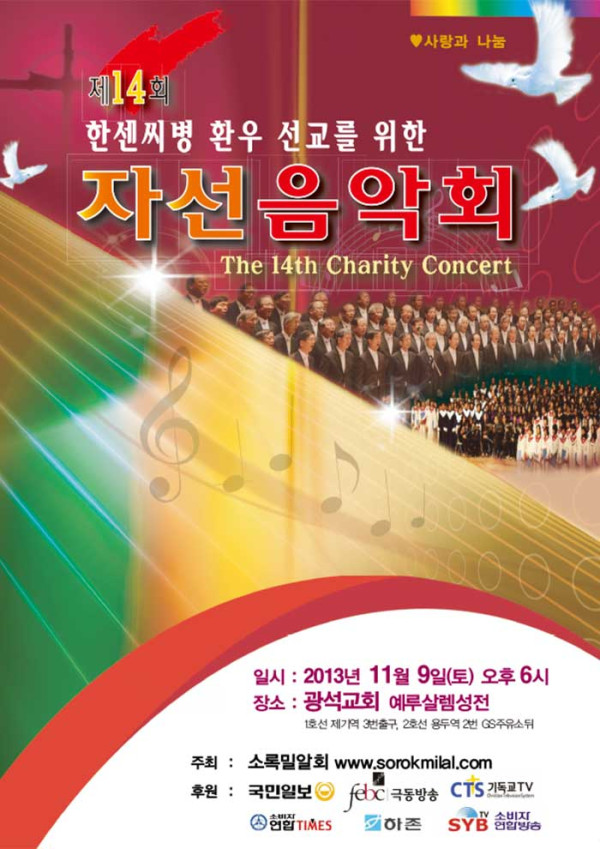 한센 환우들을 위한 자선음악회에 여러분을 초대합니다.