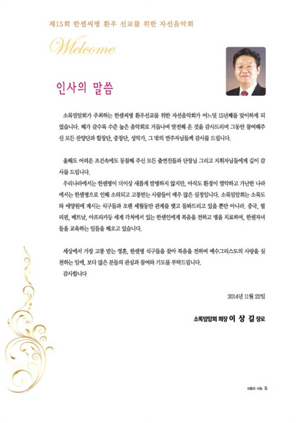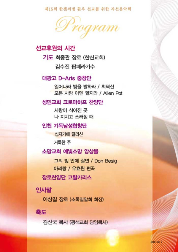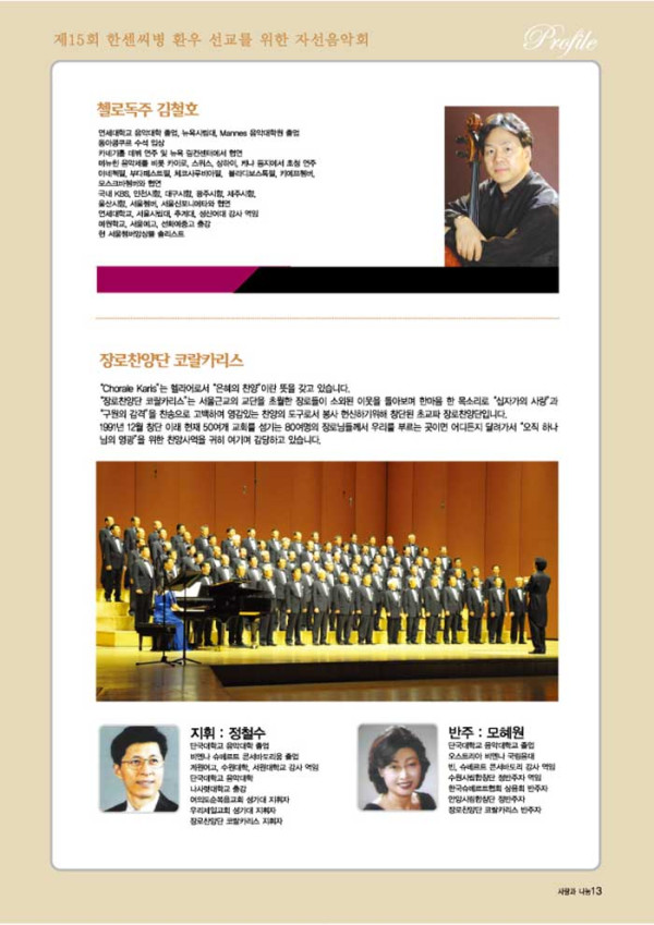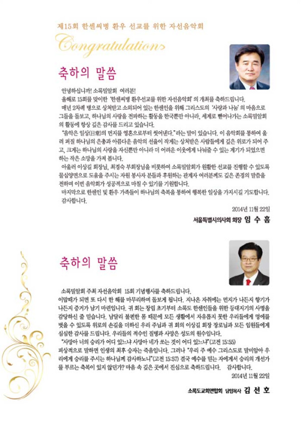 제15회 제15회 자선음악회 페이지 정보 목록 본문 일시 2014년 11월 22일 (토) 오후 6시 장소 광석교회 예루살렘성전 후원 국민일보, 극동방송, (주)하존, SYB소비자연합방송, CTS 주최 소록밀알회 이전글제16회 자선음악회 15.11.25 다음글제5회 자선음악회 14.10.02