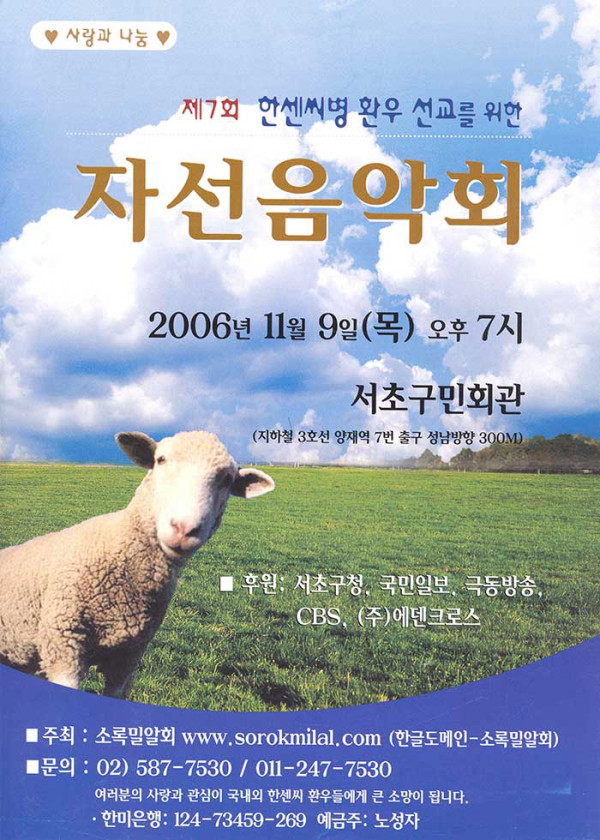 여러분의 사랑과 관심이 국내외 한센씨 환우들에게 큰 소망이 됩니다.