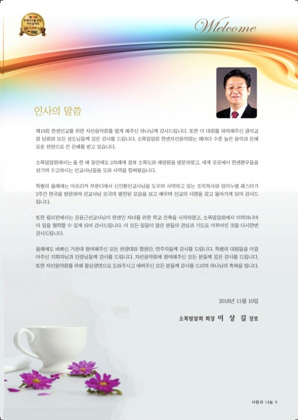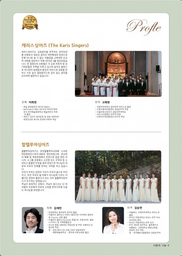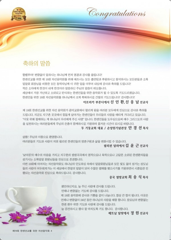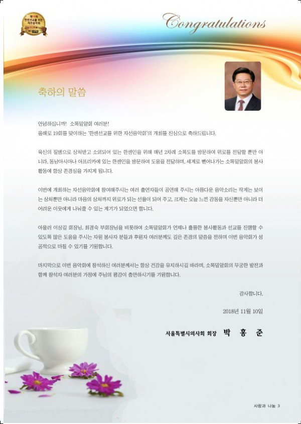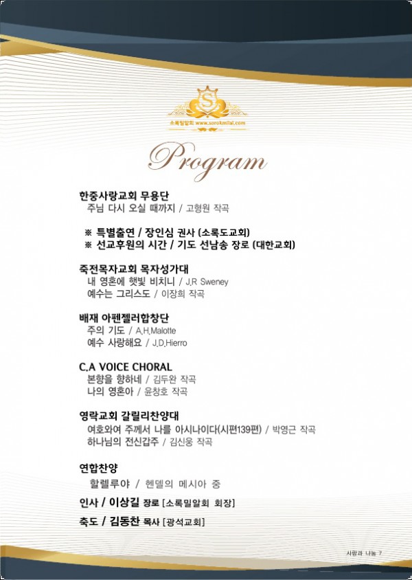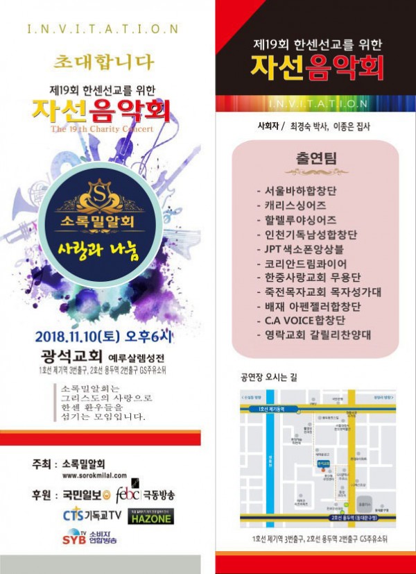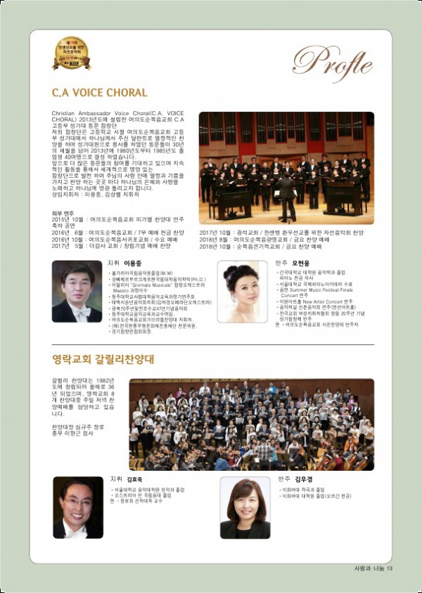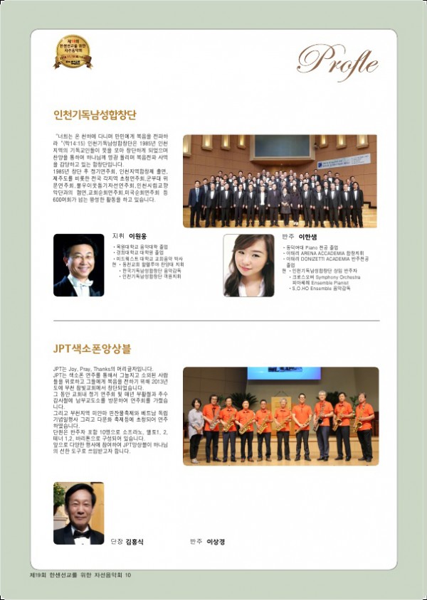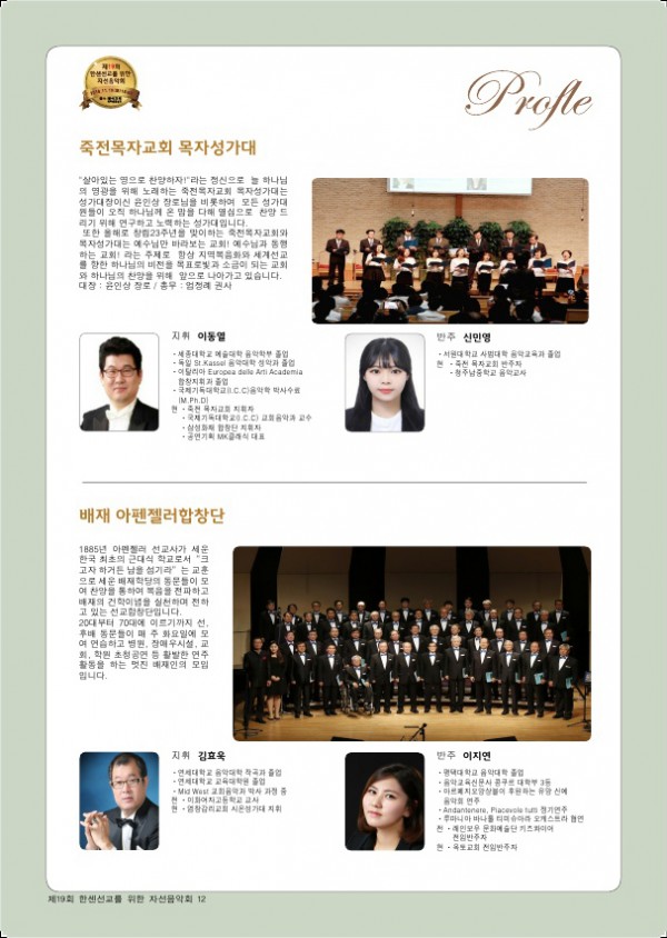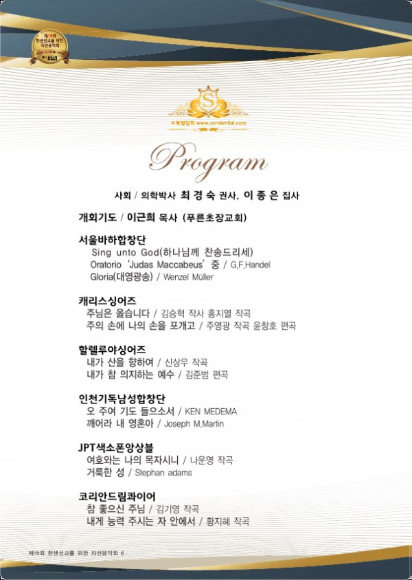 제19회 제19회 자선음악회 페이지 정보 목록 본문 일시 2018년 11월 10일 (토) 오후 6시 장소 광석교회 예루살렘성전 후원 국민일보, febc극동방송, CTS기독교TV, HAZONE, SYB소비자연합방송 주최 소록밀알회 이전글제20회 자선음악회 19.11.29 다음글제18회 자선음악회 17.11.25