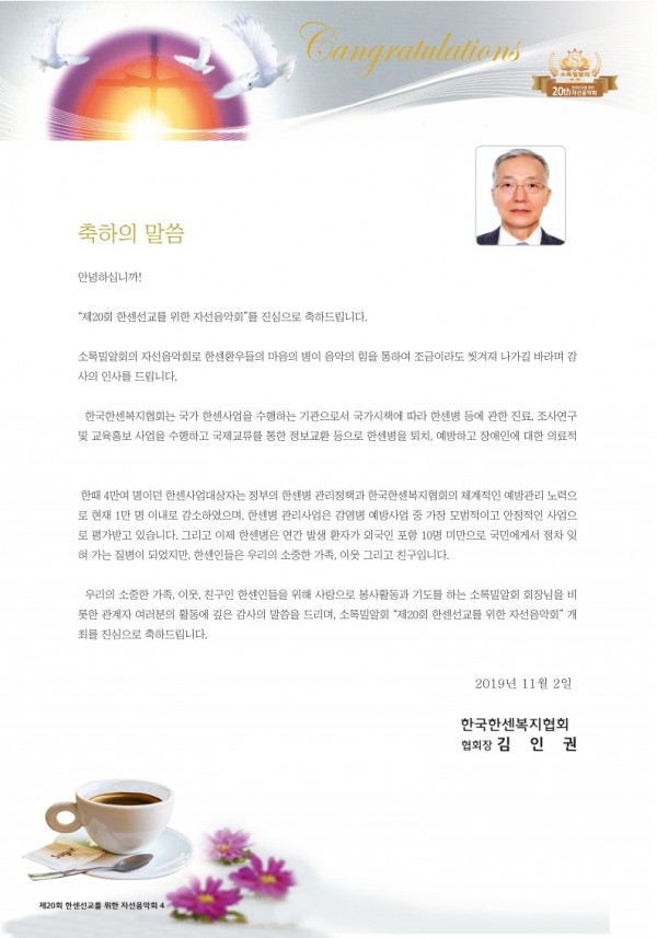 한센 환우들을 위한 자선음악회에 여러분을 초대합니다.