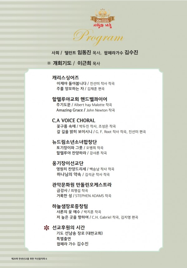 | 후원 | 국민일보, febc극동방송, CTS기독교TV, GOOD TV, HAZONE, SYB소비자연합방송 |