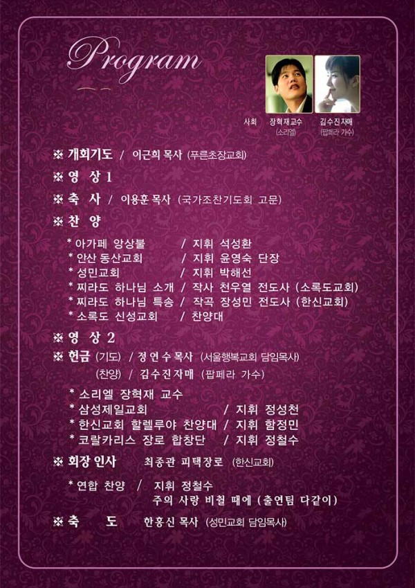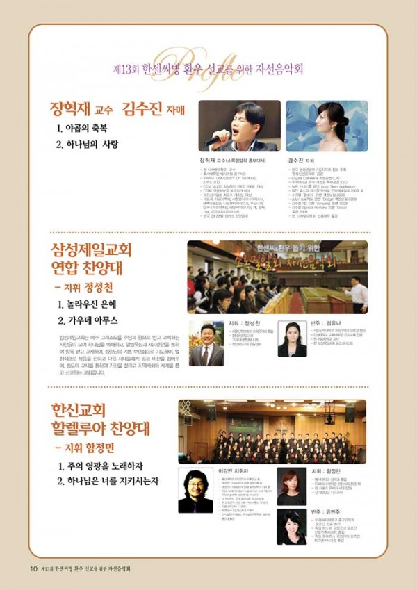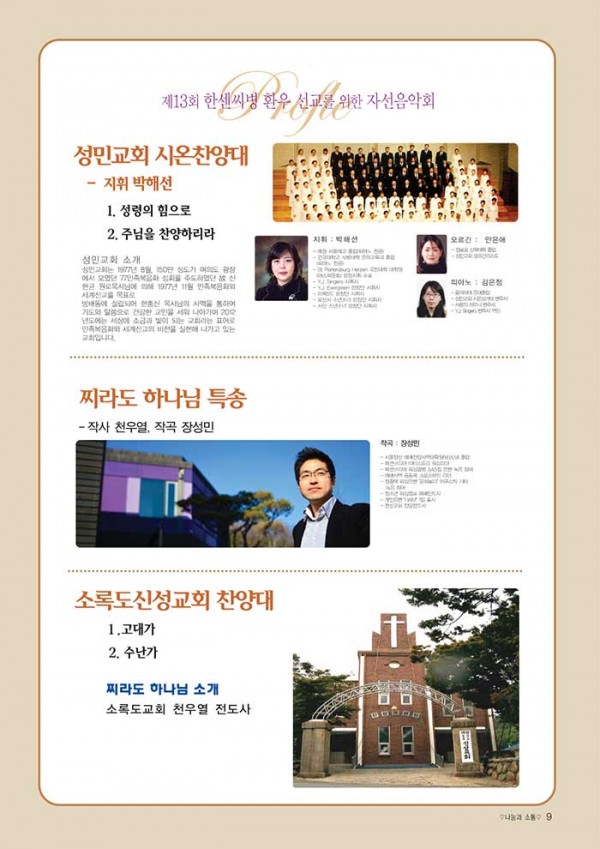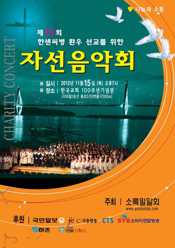 제13회 제13회 자선음악회 페이지 정보 목록 본문 일시 2012년 11월 15일 (목) 오후 7시 장소 한국교회100주년기념관 후원 국민일보, 극동방송, CTS, SYB소비자연합방송, (주)하존, 소비자연합타임즈 주최 소록밀알회 이전글제1회 자선음악회 14.10.02 다음글14회 자선음악회 13.08.14