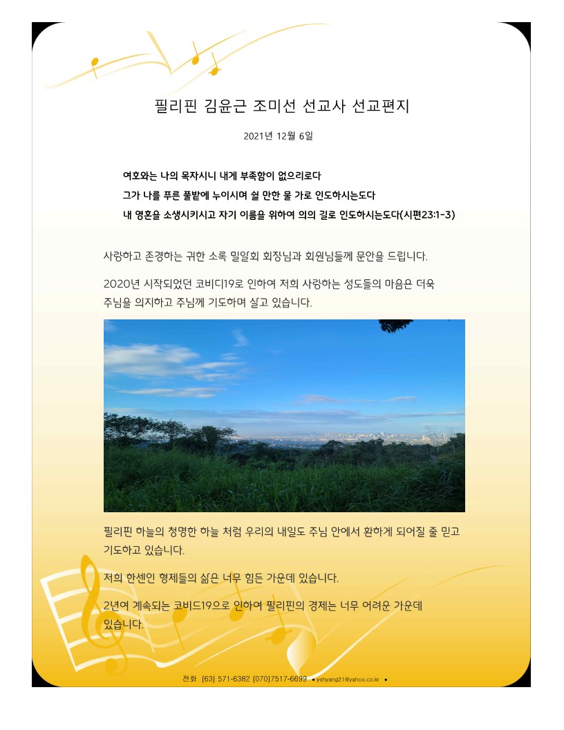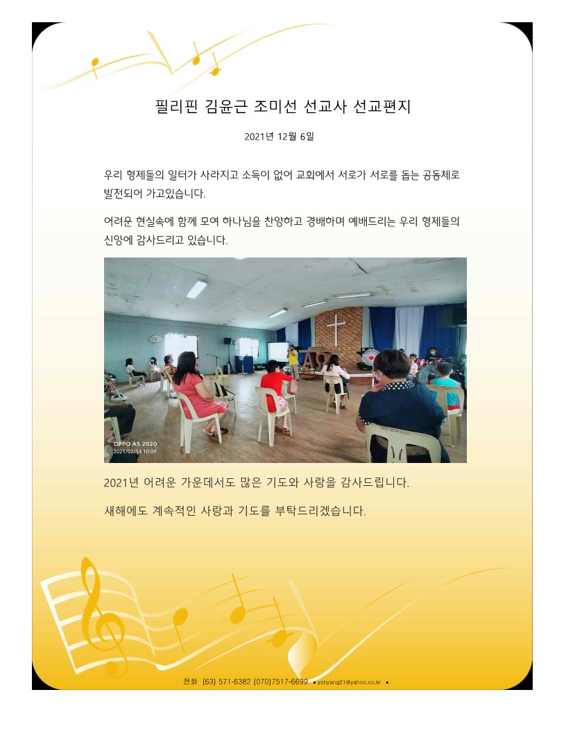 2021년 12월 선교보고 페이지 정보 작성자 소록밀알회 댓글 0건 조회 264회 작성일 21-12-09 16:47 목록 본문 2021년 12월 선교보고 이전글2022년 5월 선교보고 22.05.10 다음글2021년 8월 선교보고 21.08.24 댓글 0 댓글목록 등록된 댓글이 없습니다.