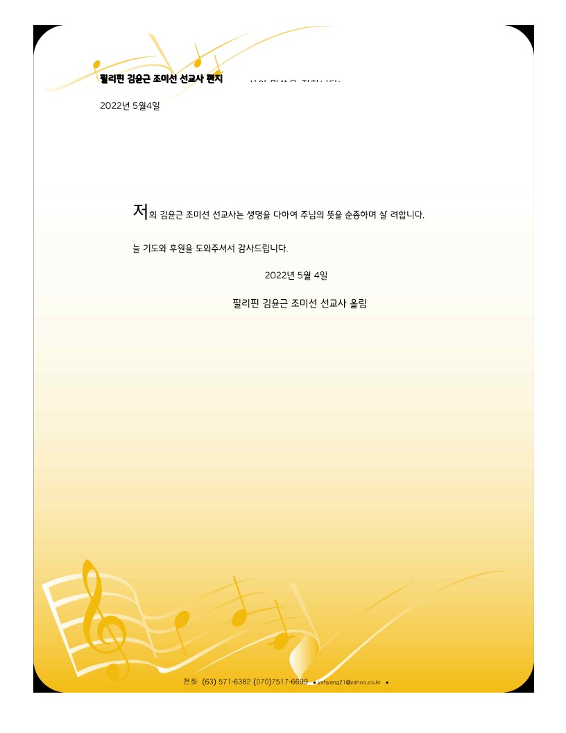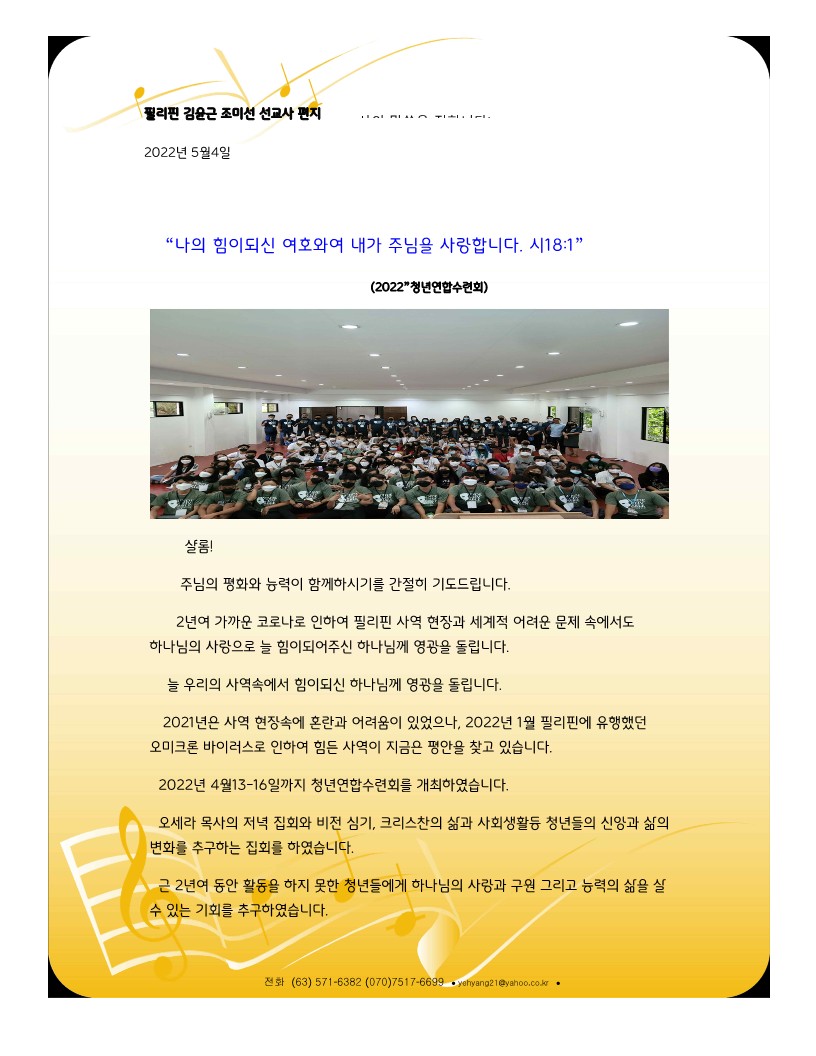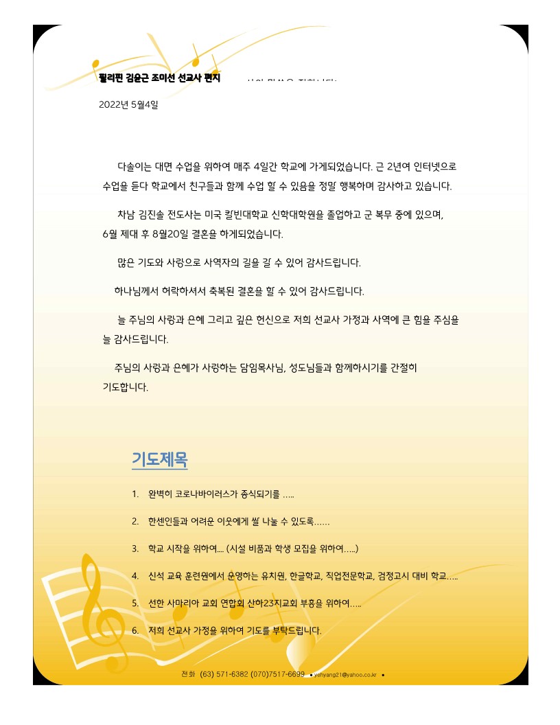 2022년 5월 선교보고 페이지 정보 작성자 소록밀알회 댓글 0건 조회 265회 작성일 22-05-10 13:53 목록 본문 2022년 5월 선교보고 이전글2023년 6월 선교보고 23.07.12 다음글2021년 12월 선교보고 21.12.09 댓글 0 댓글목록 등록된 댓글이 없습니다.