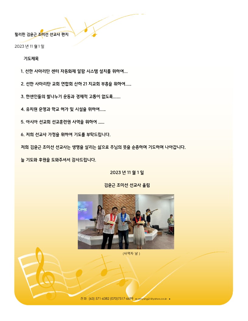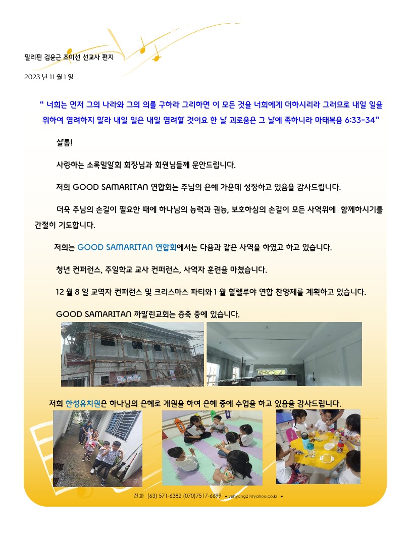 11월 선교편지 페이지 정보 작성자 소록밀알회 댓글 0건 조회 155회 작성일 23-11-10 13:43 목록 본문 23년 11월 선교편지 이전글2024 5월 선교편지 24.05.24 다음글2023년 6월 선교보고 23.07.12 댓글 0 댓글목록 등록된 댓글이 없습니다.